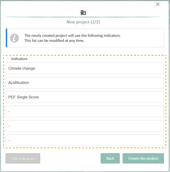 To facilitate the selection of indicators for each of your projects, you can use the family creation function.