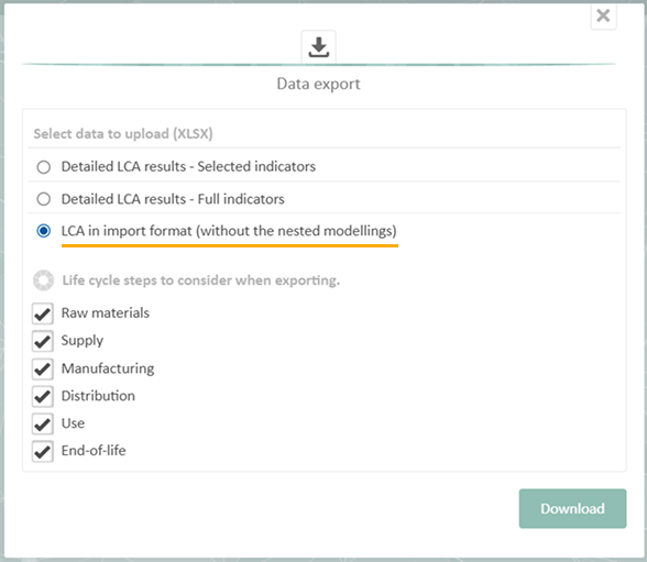 By clicking on it, a pop-up window opens with the LCA in import format in third position.